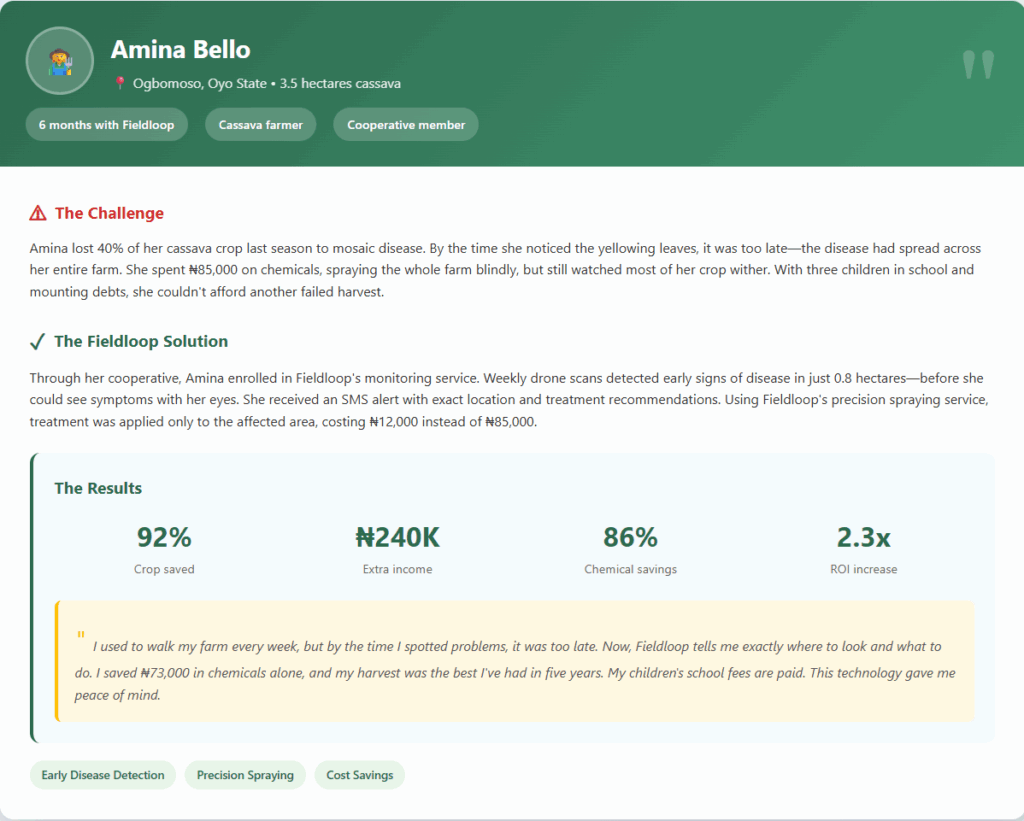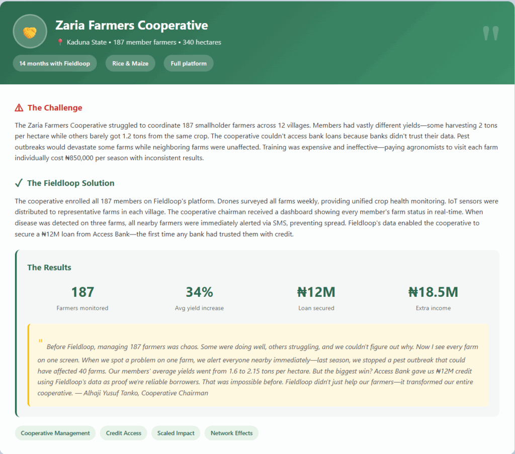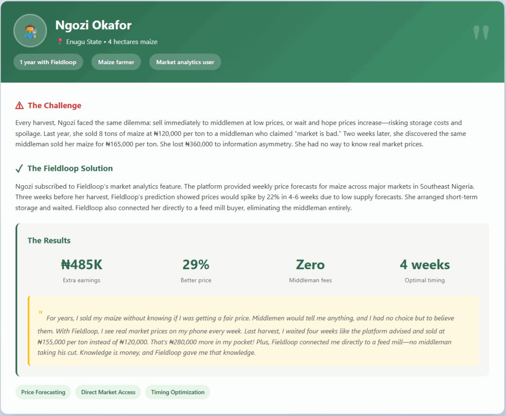Early users report 15-35% increases in revenue simply by making better-informed decisions about what to grow and when to sell. We’re helping farmers transition from subsistence agriculture to profitable agribusiness, with data as their competitive advantage.