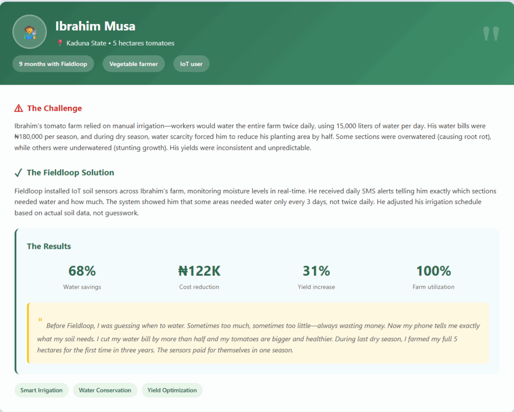 Fieldloop was founded to solve one of Africa’s most pressing challenges: building a food system that is both productive and sustainable. We identified a critical need for localized, tech-driven research to help farmers overcome climate change, soil degradation, and resource waste. Our journey began with a simple idea: to harness the power of data to crate smarter, greener farms.